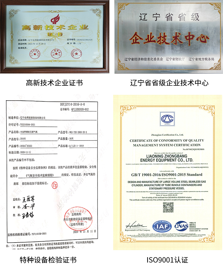 環(huán)境和健康管理體系認(rèn)證證書、管束式集裝箱認可證書和特種設備試驗證書等。